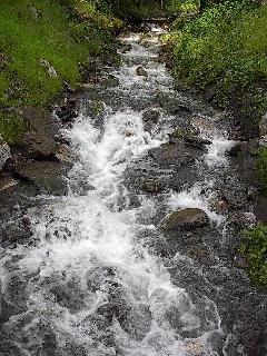 Das hier im rechten Bild ist übrigens nicht der Bach an meinem Schlumpf, sondern die Weiterführung von dem Wasserfall, den wir im Bild links bestaunt haben. Aus der Ferne sieht das aus, als würden da nur ein paar Tröpfchen runter rieseln - aber es ist doch schon ne Menge Wasser, die hier abfliesst. Und: EIS-KALT!