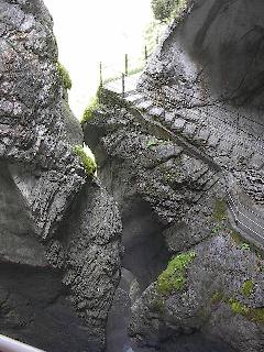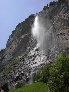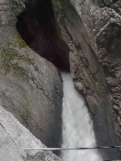 Hier öffnet sich das Tal zum Schilthorn hin. Doll, ne? Das Bild entstand am zweiten Tag, als ich eine Wanderung zu den Trümmelbach-Fällen gemacht hab. Ich hatte keine Ahnung, wie weit die wech waren (auf dem Bild etwa da, wo der linke Berg im Tal ankommt!) und ich hatte keine Ahnung, was der Eintritt kosten würde. Erwähnte ich schon, dass die Schweiz ein Land der Abzocker ist? Nun, bestimmt... Die Fahrt mit einer Bahn hinauf auf das Schilthorn (etwas über 3000 Meter) sollte 92,60 ChF kosten! Das sind immer noch rund 68,-- Euro - also über 130,-- DM!!! Und das nur, weil da oben mal ein Bond-Film gedreht wurde? Nee, danke! Voll Freude mußte ich dann feststellen, dass die Trümmelbachfälle nu doch nich sooo weit wech waren und dass man hier nur 10 ChF Eintritt berappen musste. Das war zunächst mal akzeptabel. Mit einem Aufzug (Bild rechts) wurde man hier zunächst im Berg hochgefahren. Im Berg selbst waren 10 verschiedene Wasserfälle zu bestaunen, welche die Gletscher der Bergriesen entwässern - mit bis zu 20.000 Litern Wasser pro Sekunde eine spritzige Angelegenheit! Tolle Naturschauspiele wie z.B. die Partnach-Klamm bei Garmisch konnten da nicht mithalten. Ein paar Impressionen: