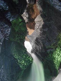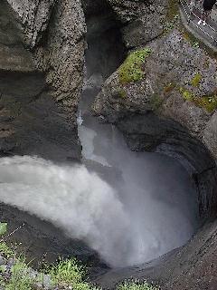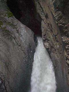 Ganz unten wieder angekommen schießt das Wasser mit einer gewaltigen Kraft aus dem Berg in den Trümmelbach: