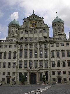 ...und viel Platz hatte ich auch. Am nächsten Tag besuchte ich Augsburg. Mit dem Bus. Weil: bei der schwülen Witterung hatte ich nu wirklich keine Lust, die 7 Km (eine Strecke!) zu radeln. Aber auf der Homepage des Campingplatz steht ja, dass eine Bushaltestelle direkt am Platz ist und dass die Busverbindung ganz toll ist... Tja... Mag ja sein... Werktags... Wer eifrig mitgezählt hat, weiß, dass jetzt grade heute Sonntag war. Und Sonntags - man höre und staune - gibt es EINEN Bus (um 12:08 Uhr, das weiß ich noch!) nach Augsburg und es gibt auch wieder EINEN Bus (um 16:00 Uhr) der zurück nach Mühlhausen fährt. Aber immerhin, es gibt einen. Und den hab ich dann auch gleich genommen. Hab vom Hauptbahnhof aus die Stadt erkundet und mich von den tollen Bauten beeindrucken lassen...